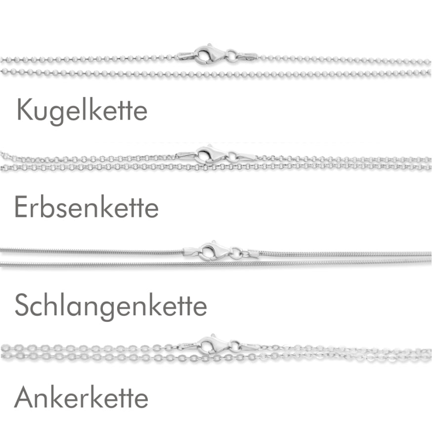 Die Anhänger hängen an einer Kette aus 925 Sterling Silber. Die Öse wird von uns fachmännisch gelötet.