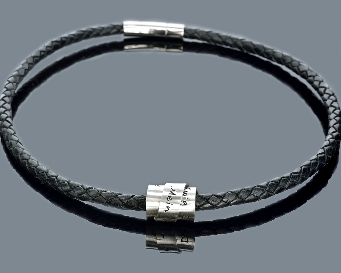 Das Armband wird aus schwarzem Leder ca. 5mm dick, hochwertig hergestellt.
