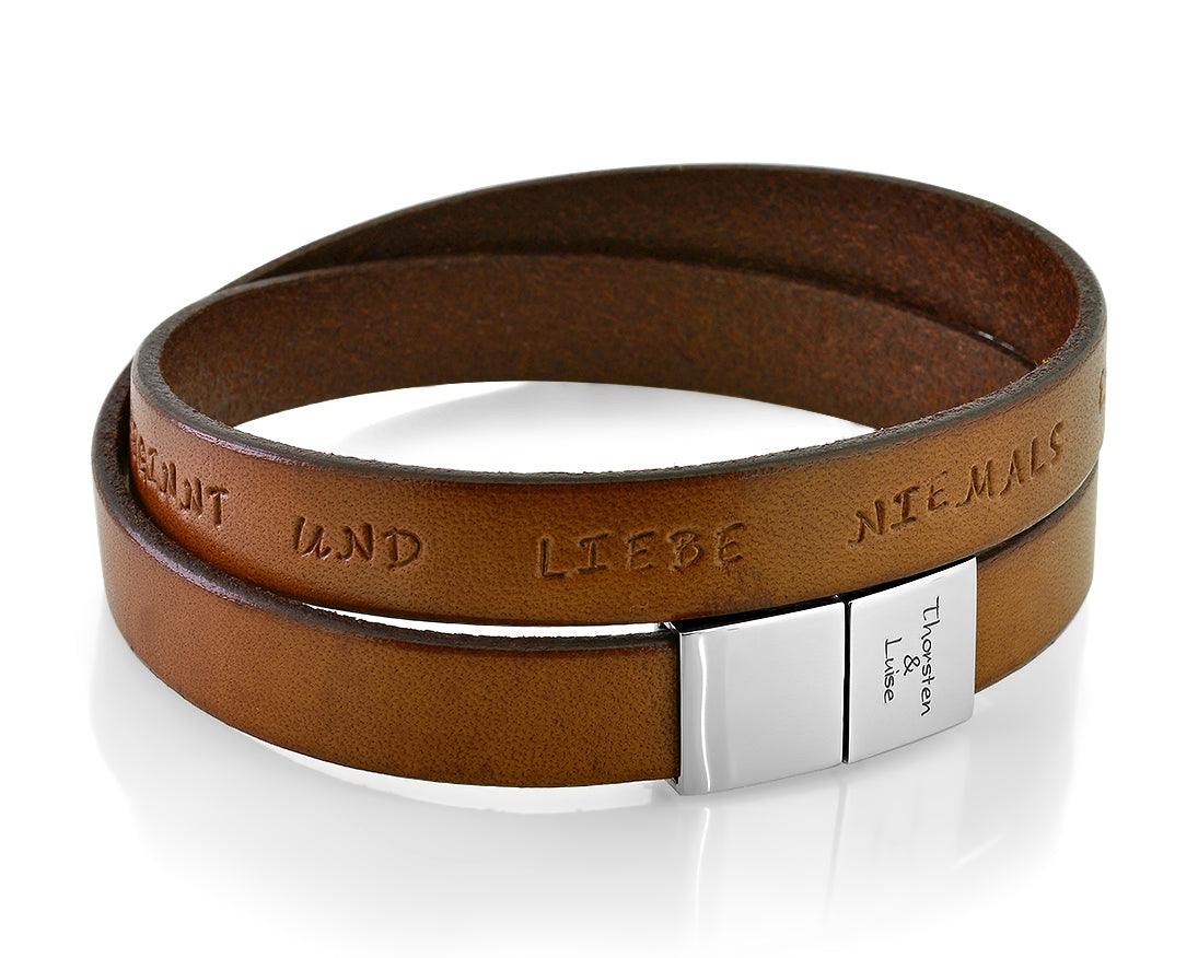 Dieses Männerarmband, wird aus stabilem braunem Leder mit einem edlen Edelstahl-Verschluss in unserer hauseigenen GALWANI Silberschmiede und Schmuckatelier zu Ihrem ganz persönlichem Schmuckstück mit viel Liebe zum Detail hergestellt und im per Hand ausgeführtem Herstellungsverfahren, professionell in Ihrer Wunschgröße und mit Ihrem Wunschtext angefertigt.
