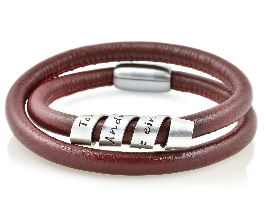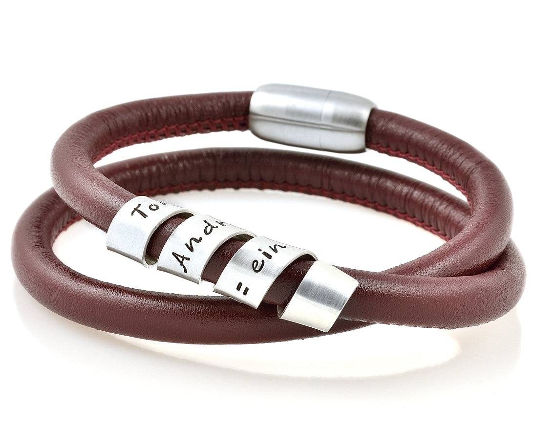 LEDERARMBAND MIT GRAVUR, DAMENARMBAND ROT, TEXTSCHMUCK