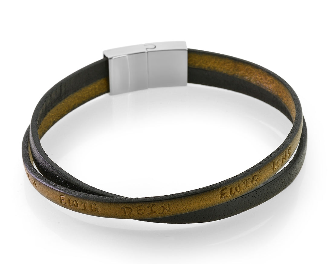 Dieses Männerarmband, wird aus stabilem Leder mit einem edlen Edelstahl-Verschluss in unserer hauseigenen GALWANI Silberschmiede und Schmuckatelier zu Ihrem ganz persönlichem Schmuckstück mit viel Liebe zum Detail hergestellt und im per Hand ausgeführtem Herstellungsverfahren, professionell in Ihrer Wunschgröße und mit Ihrem Wunschtext angefertigt.