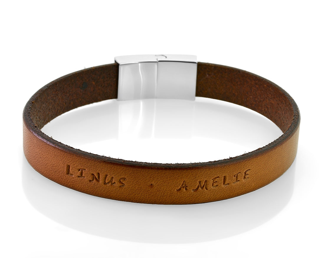 Das Leder ist ca. 10mm breit. Für die Gravur auf dem Lederband stehen Ihnen maximal ca. 30 Zeichen inkl. Leerzeichen für Ihren Wunschnamen bzw. Wunschtext zur Verfügung. Der Text kann nur in Großbuchstaben geschrieben werden. Die Buchstaben werden von uns handgestempelt. Der Abstand und die Stellung können deswegen variieren, was jedes Stück zu einem Unikat macht.