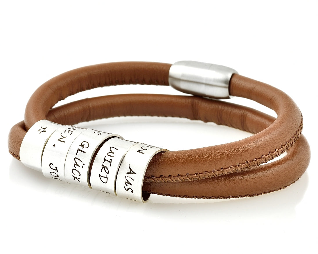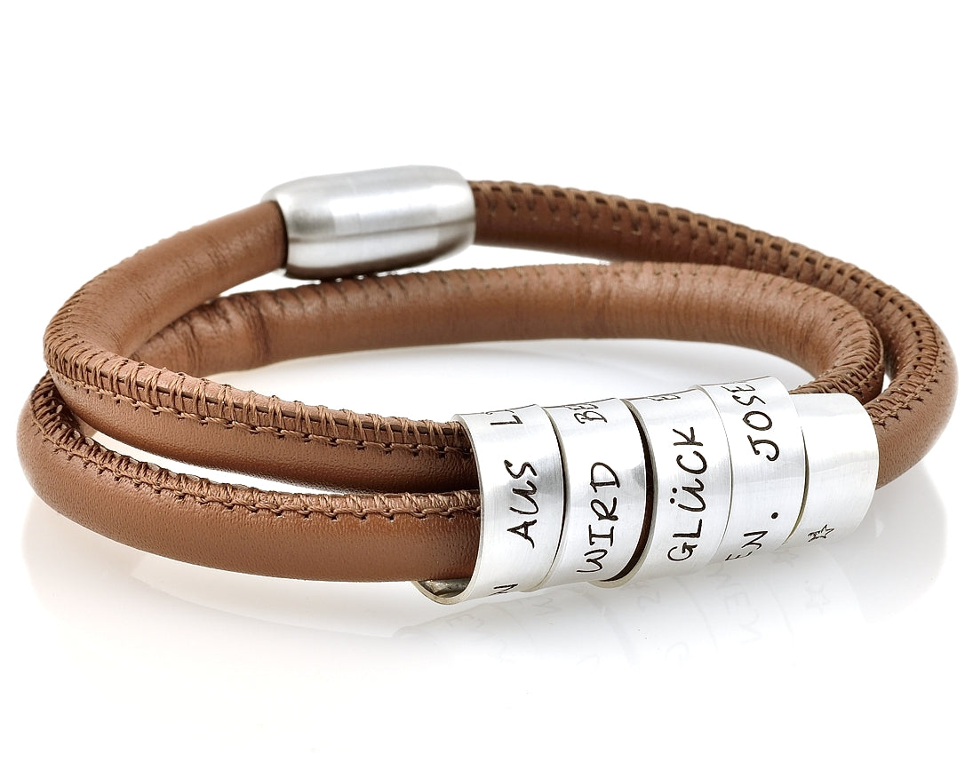 Männerarmband aus Leder mit 925 Silber Anhänger mit Gravur