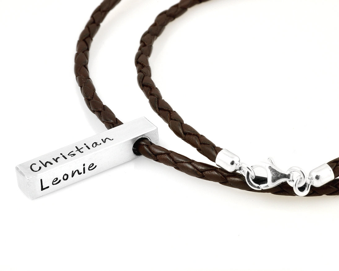 MÄNNERKETTE MIT GRAVUR, SILBERBARREN SCHMUCK, HERRENSCHMUCK , LEDERKETTE