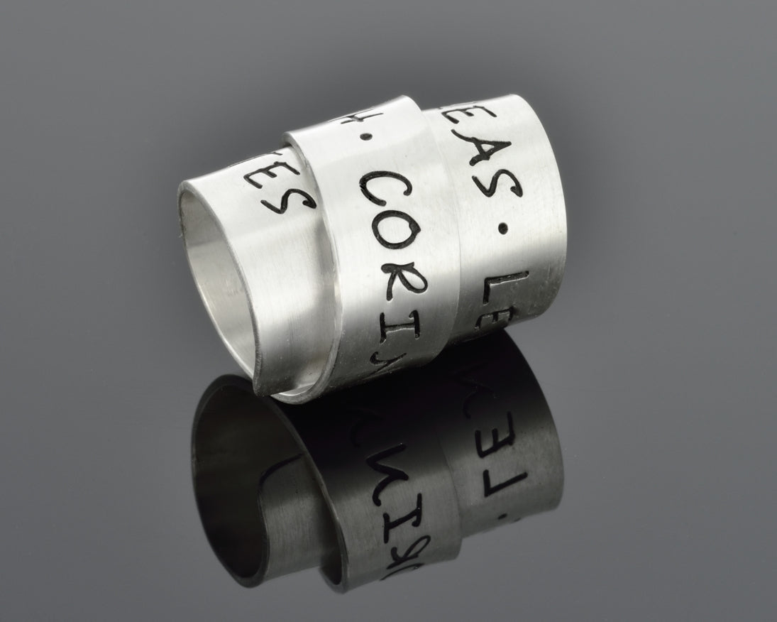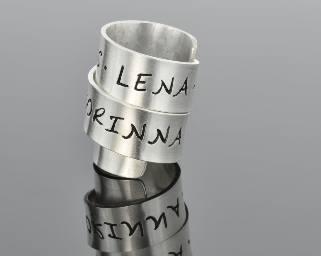 Alle Metallelemente werden per Hand von uns verarbeitet und nach Ihren Wünschen als Unikatschmuck fertig designed. Die Buchstaben werden von uns handgestempelt. Der Abstand und die Stellung können deswegen variieren, was jedes Stück zu einem Unikat macht.