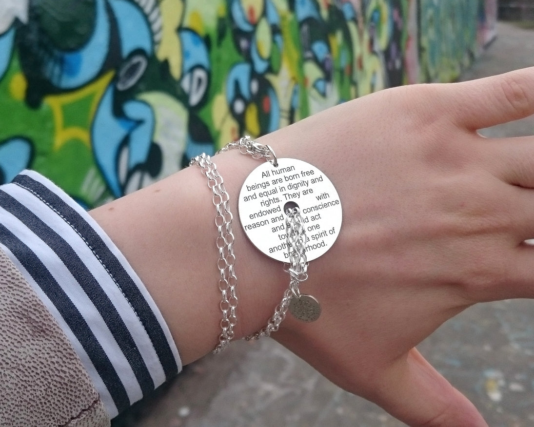 Und deshalb haben wir eine exklusive Schmuck Kollektion entwickelt, mit der jeder seine Unterstützung der Menschenrechte zeigen kann.