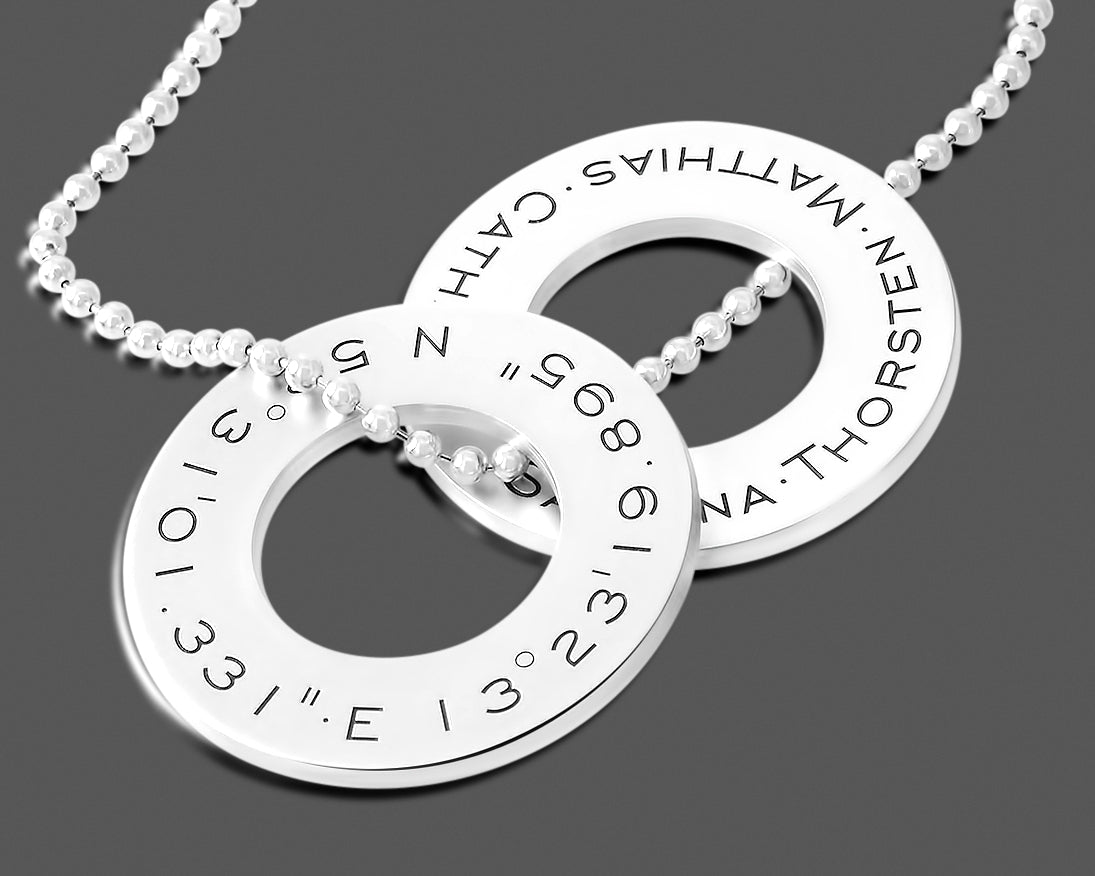 SILBERKETTE MIT KOORDINATEN & NAMEN ANHÄNGER GRAVUR SCHMUCK 925 SILBER