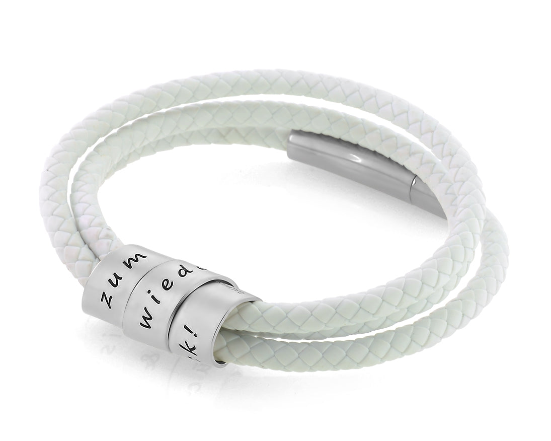 Auf ein Armband kann man eine Vielzahl von Dingen gravieren lassen. Die klassischste Option ist der Name des Trägers oder eines geliebten Menschen. Die Initialen des Trägers oder eines Paares können eine stilvolle und subtile Gravur sein. Ein besonderes Datum wie Geburtstag, Jahrestag oder ein bedeutendes Ereignis kann eine emotionale Bedeutung vermitteln.