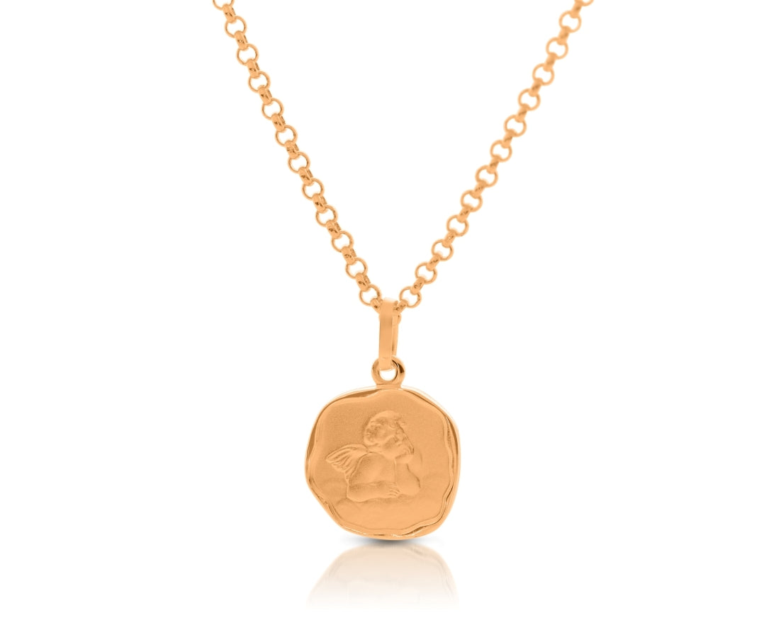 Engel Kette rosé vergoldet Gravur Anhänger Taufe Kommunion
