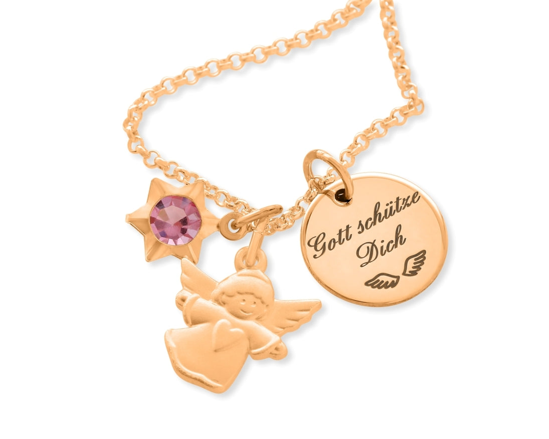 KETTE ROSÉ VERGOLDET GRAVUR TAUFSCHMUCK ENGEL ANHÄNGER