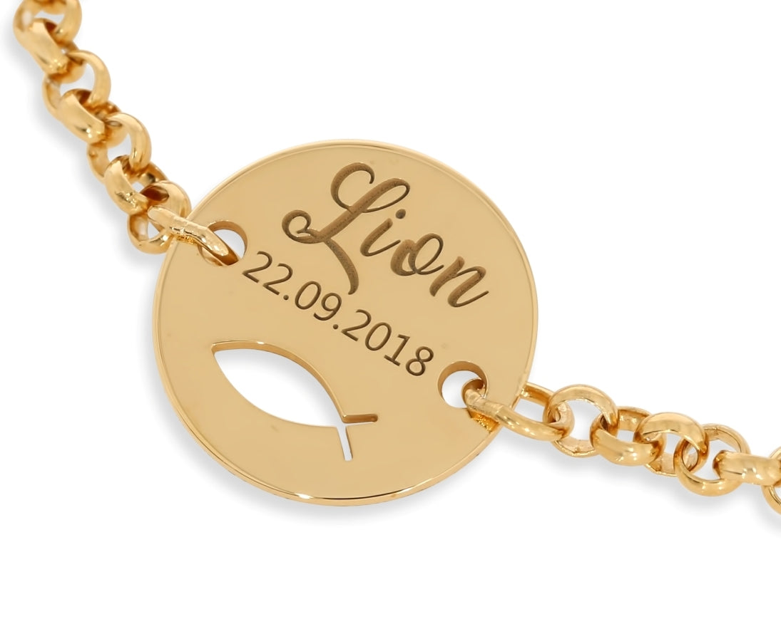 NAMENSARMBAND VERGOLDET GRAVUR TAUFFISCH