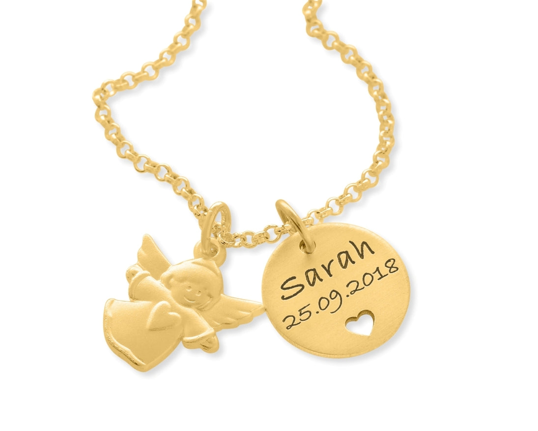 NAMENSKETTE VERGOLDET GESCHENK TAUFE GEBURT KOMMUNION ENGEL