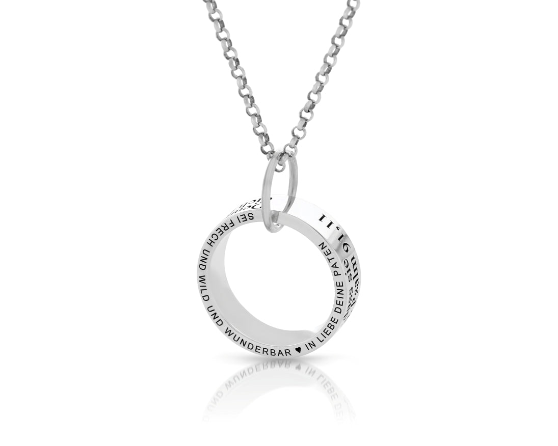 Ein wunderschöne Kette aus 925 Sterling Silber mit Ring Anhänger, designed mit Ihren Wunschnamen bzw. Wunschtext. Der Ring hat einen Außendurchmesser von ca. 1,8 cm.
