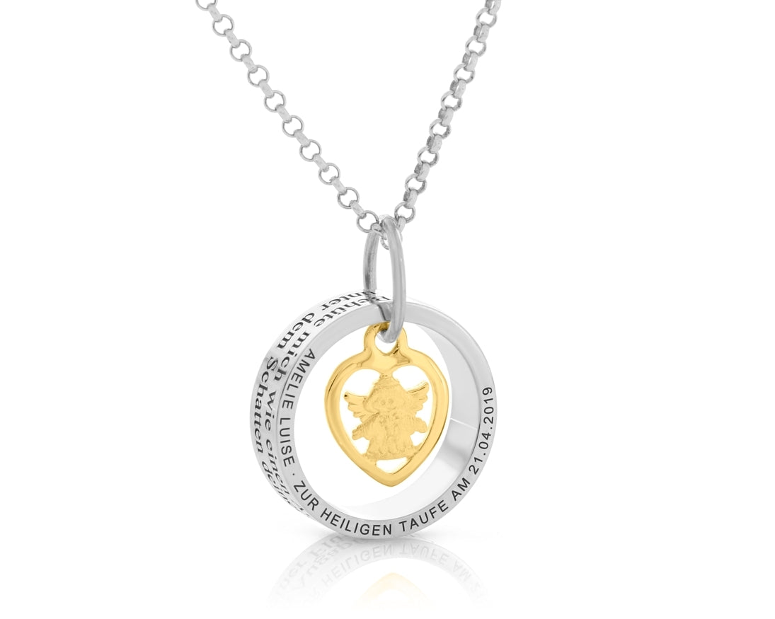 Schutzengel vergoldet Kette Ring Gravur Anhänger personalisierte Kette Taufe