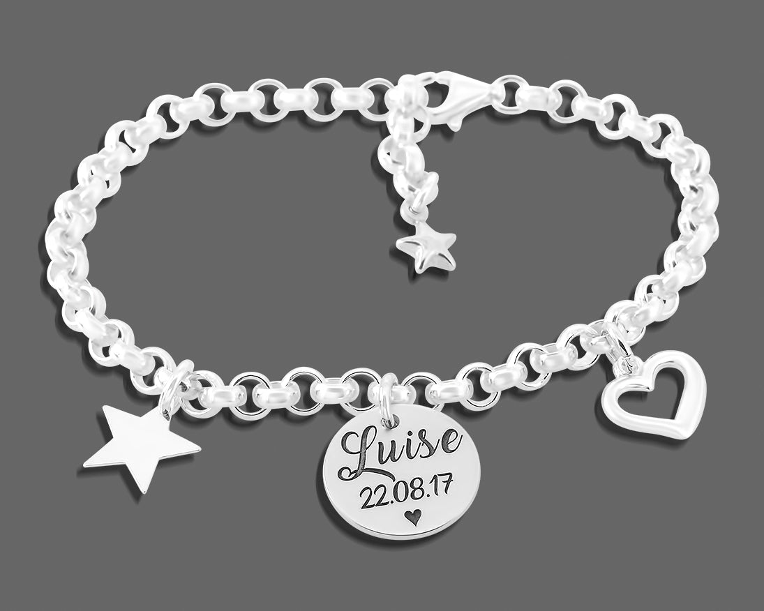 SILBER TAUFARMBAND, STERN, HERZ ANHÄNGER, NAMENSSCHMUCK