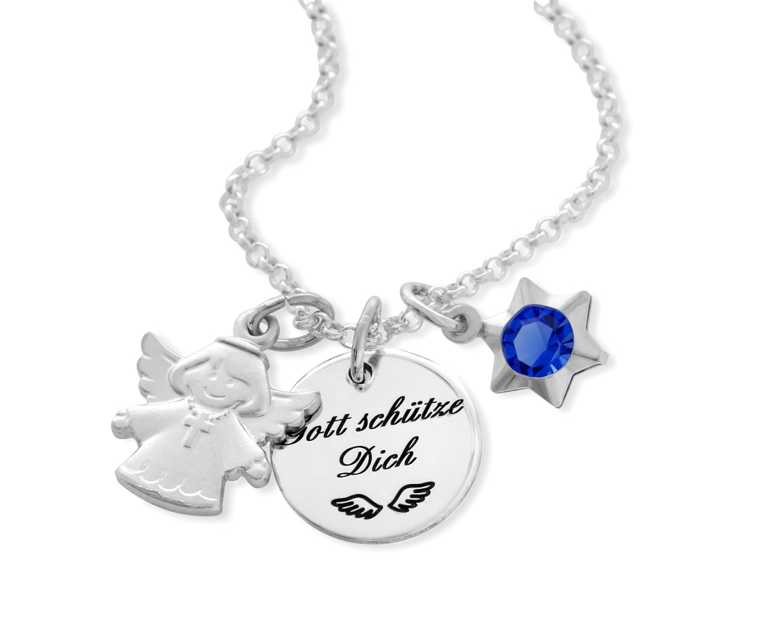SILBERKETTE GRAVUR NAME SCHUTZENGEL ANHÄNGER STERN