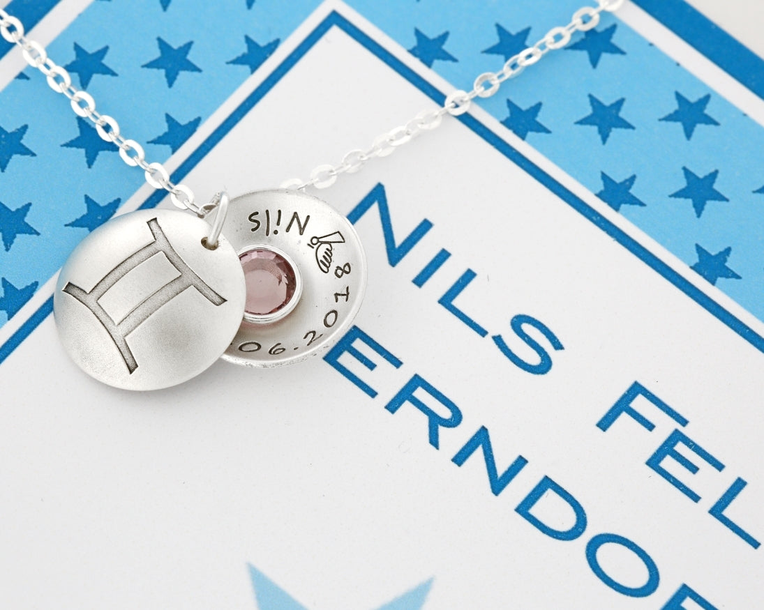 Eine wunderschöne Sternzeichenkette komplett aus 925 Sterling Silber designed mit Ihren Wunschnamen bzw. Wunschtext. Die 925 Sterling Silber Plättchen sind ca. 1,7 cm groß. In dem Medaillon ist ein Swarovski Geburtsstein in der Farbe des Geburtsmonats oder in Ihrer Wunschfarbe. Es passen maximal ca. 20 Zeichen inkl. Leerzeichen auf das hinter Plättchen rauf. Wenn Sie ein Datum/Namen für die Gravur angeben wird das Engelmotiv automatisch zwischen Ihre Angaben graviert.