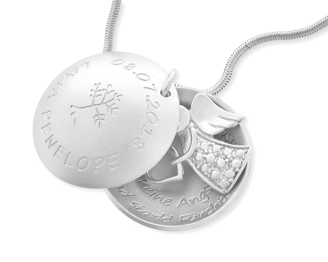 TAUFMEDAILLON MIT GRAVUR, TAUFSCHMUCK 925 SILBER, NAMENSKETTE MIT ENGEL