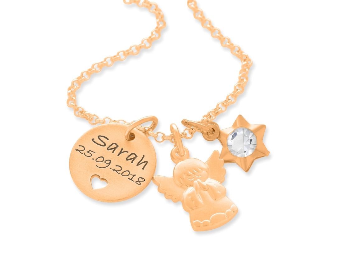 TAUFSCHMUCK ROSÉ VERGOLDET KETTE GRAVUR NAMENSKETTE ZUR TAUFE ENGEL