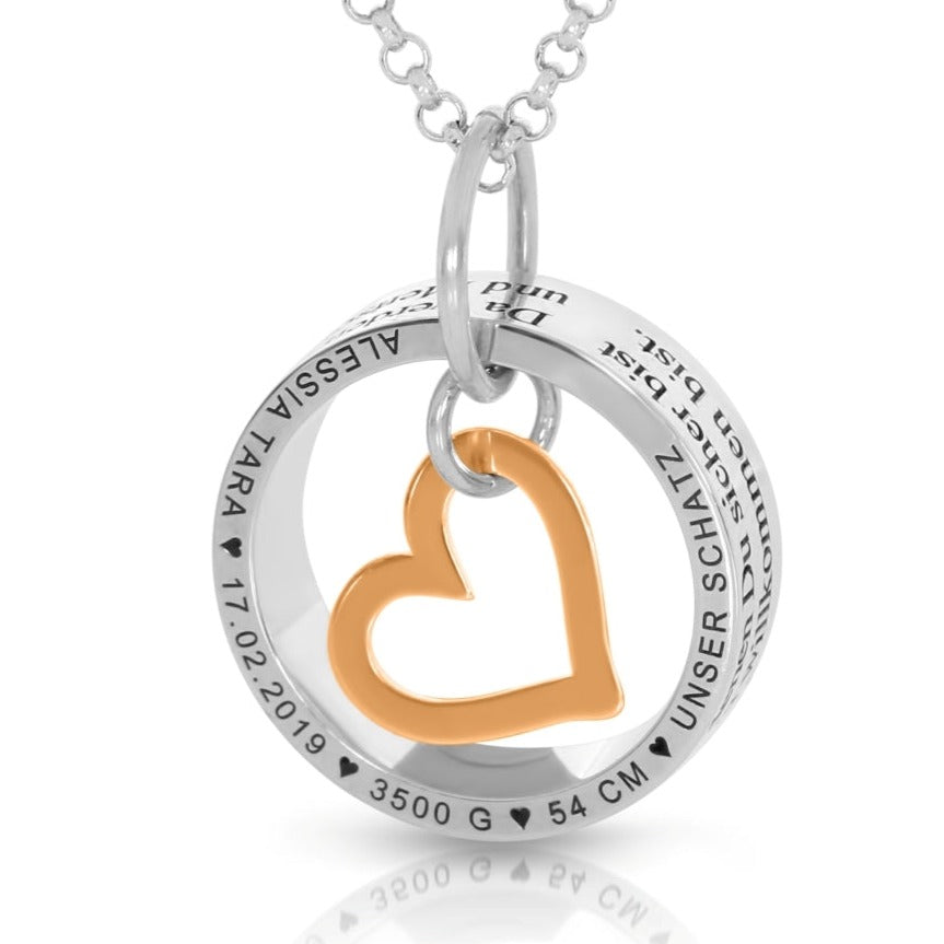 MAMA Kette ♥ oder Schmuck für Mama ist ein beliebtes Geschenk für Mutter. Egal ob Kette mit Gravur oder ohne, mit Herzanhänger oder Kinderfigur - solcher Schmuck zeigt immer die enge Verbindung zwischen Mutter und Kind, denn die Liebe zwischen Mama und Ihrem Kind ist unendlich. Bei GALWANI finden Sie eine große Auswahl an Ketten für Mütter, Armbänder für Mama oder Oma und natürlich auch Anhänger. Viele davon können mit Gravur personalisiert werden. So können die Daten des Neugeborenes fest gehalten werden und immer bei sich getragen werden als Erinnerung an das besondere Ereignis.