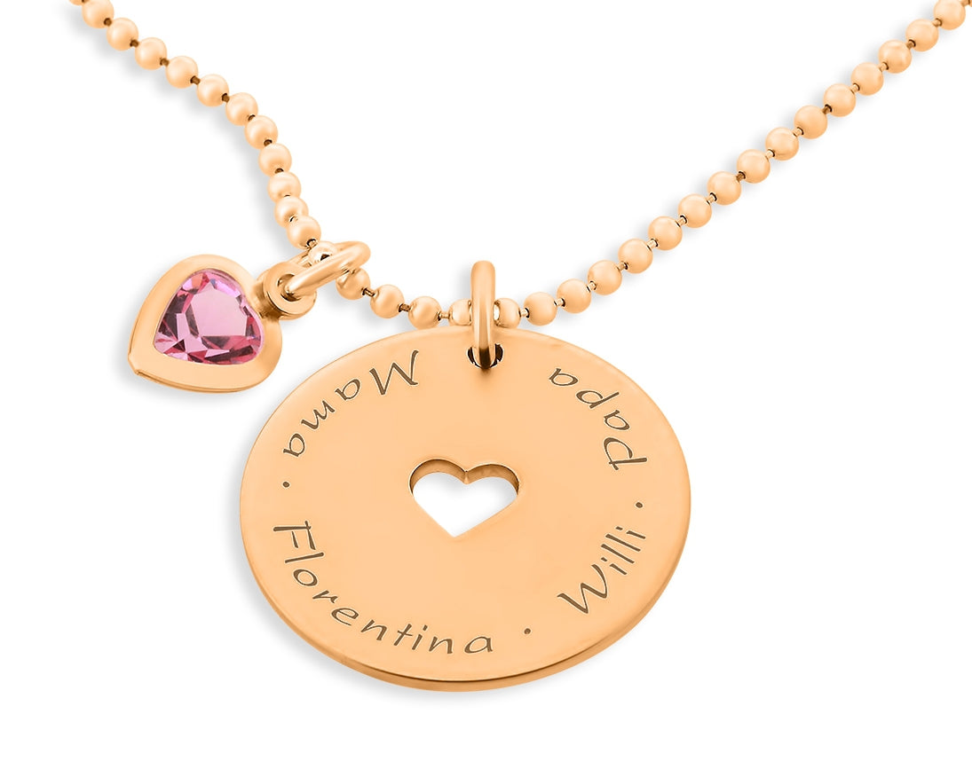FAMILIENKETTE HERZ NAMENSKETTE ROSÉ VERGOLDET DAMENSCHMUCK