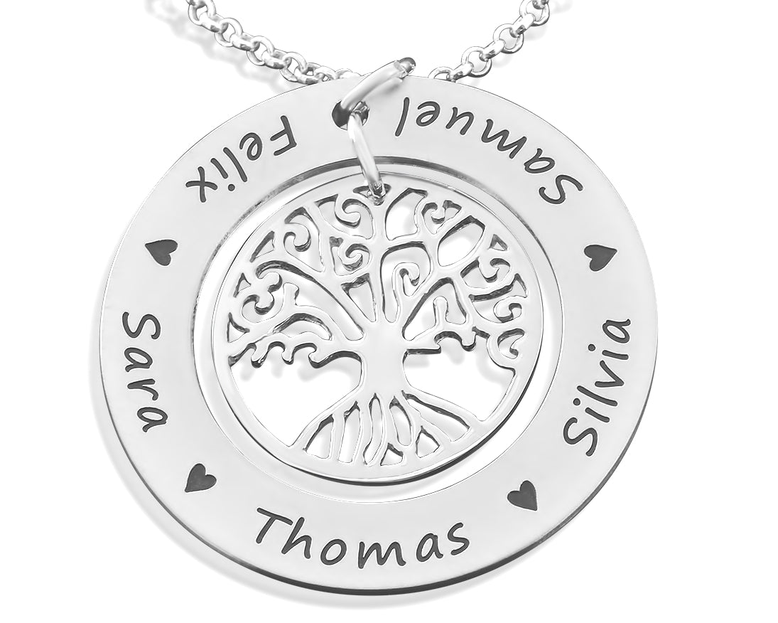FAMILIENKETTE MIT BAUM SILBERSCHMUCK MIT NAMEN NAMENSKETTE FÜR OMA MAMA