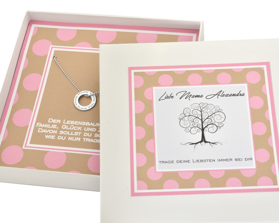 FAMILIENKETTE MIT NAMEN SCHMUCK MIT KINDERNAMEN PERSONALISIERTE GESCHENK SCHACHTEL