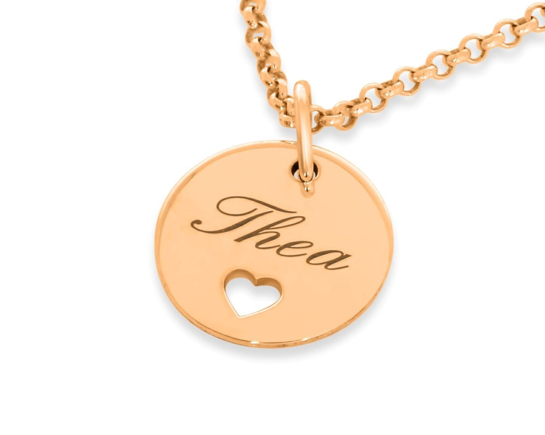 Das Plättchen ist ca. 1,3 cm groß und kann mit max. ca. 8 Zeichen inkl. Leerzeichen graviert werden. In dem Gravurplättchen ist ein niedlichen Herz ausgeschnitten.