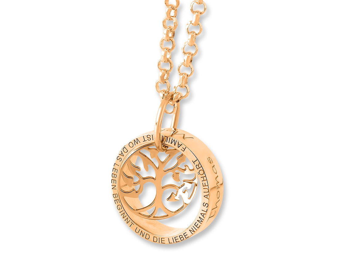 KETTE MIT RING UND LEBENSBAUM ROSÉ VERGOLDET RING MIT GRAVUR GESCHENK