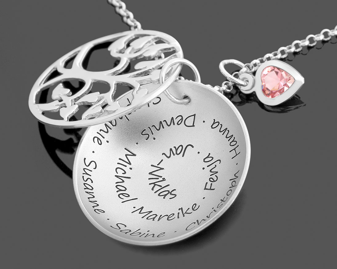LEBENSBAUM KETTE MIT NAMEN, FAMILIENKETTE MIT GRAVUR, SCHMUCKCOLLIER