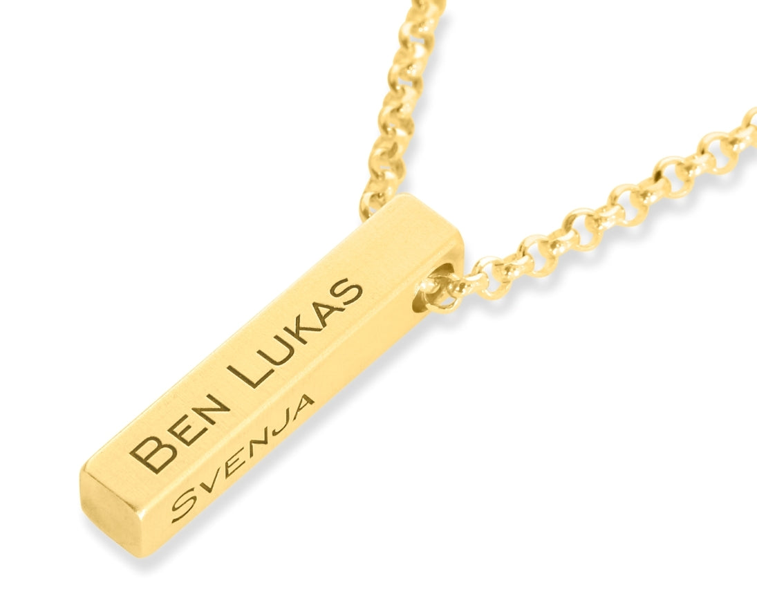Eine Silberbarren Kette aus massiven 925 Sterling Silber mit Ihrem Wunschtext, Wunschnamen oder Koordinaten. Diese Kette gehört seit vielen Jahren zu unseren Bestsellern in der Kategorie Herrenschmuck und gehört zu den absoluten Highlights der GALWANI Schmuck Kollektion.