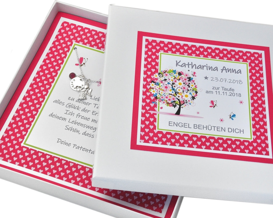 NAMENSKETTE 925 SILBER MIT GRAVUR, SCHUTZENGEL ANHÄNGER, TAUFKETTE, GESCHENK SCHACHTEL