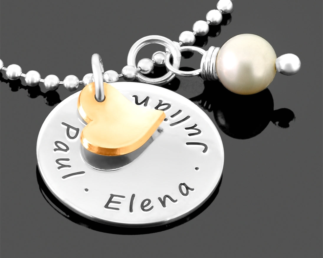 NAMENSKETTE SILBER FAMILIENKETTE MIT GRAVUR HERZ ANHÄNGER