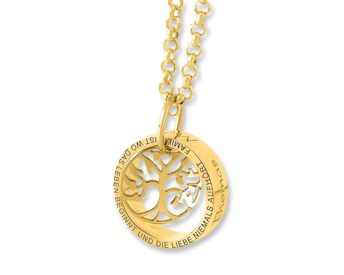 NAMENSKETTE VERGOLDET, LEBENSBAUM, RING MIT NAMEN, SCHMUCK MIT GRAVUR, FAMILIE