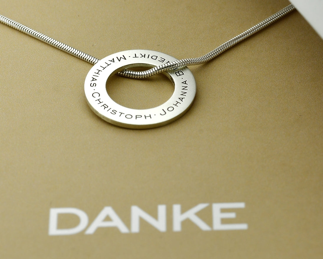 Alle Gravierungen, die auf unseren Schmucktücken sind, sind tief graviert. Dadurch ist die Gravur immer gut zu sehen, egal ob geschwärzt oder nicht geschwärzt.