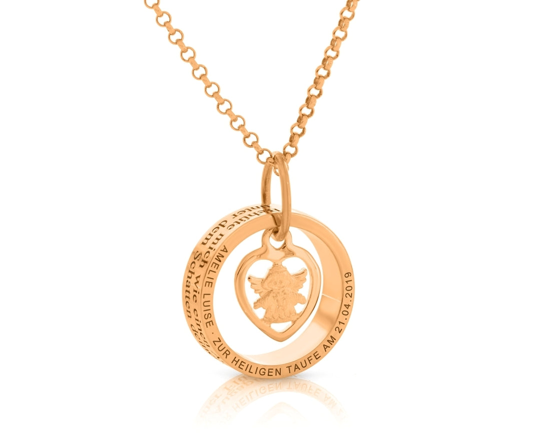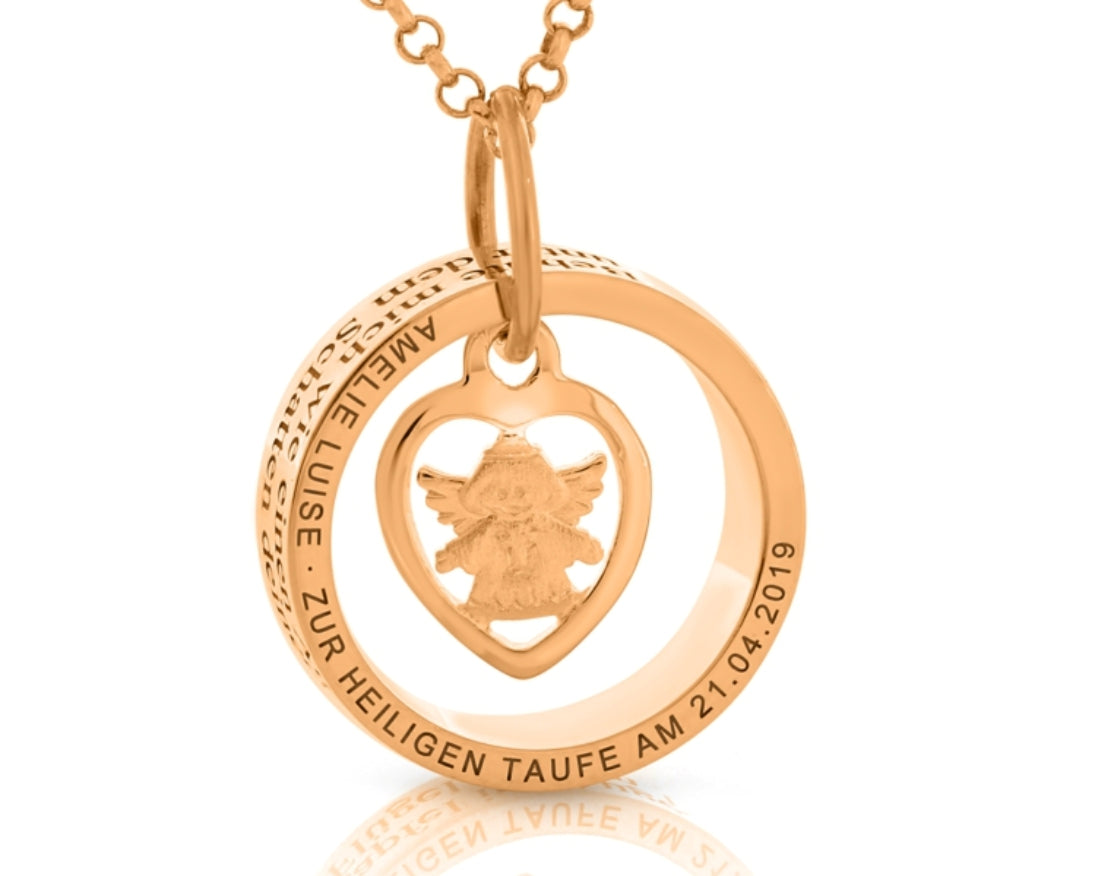 Ring Anhänger Gravur Engel rosé vergoldet Taufschmuck Taufring