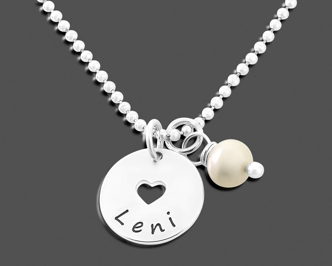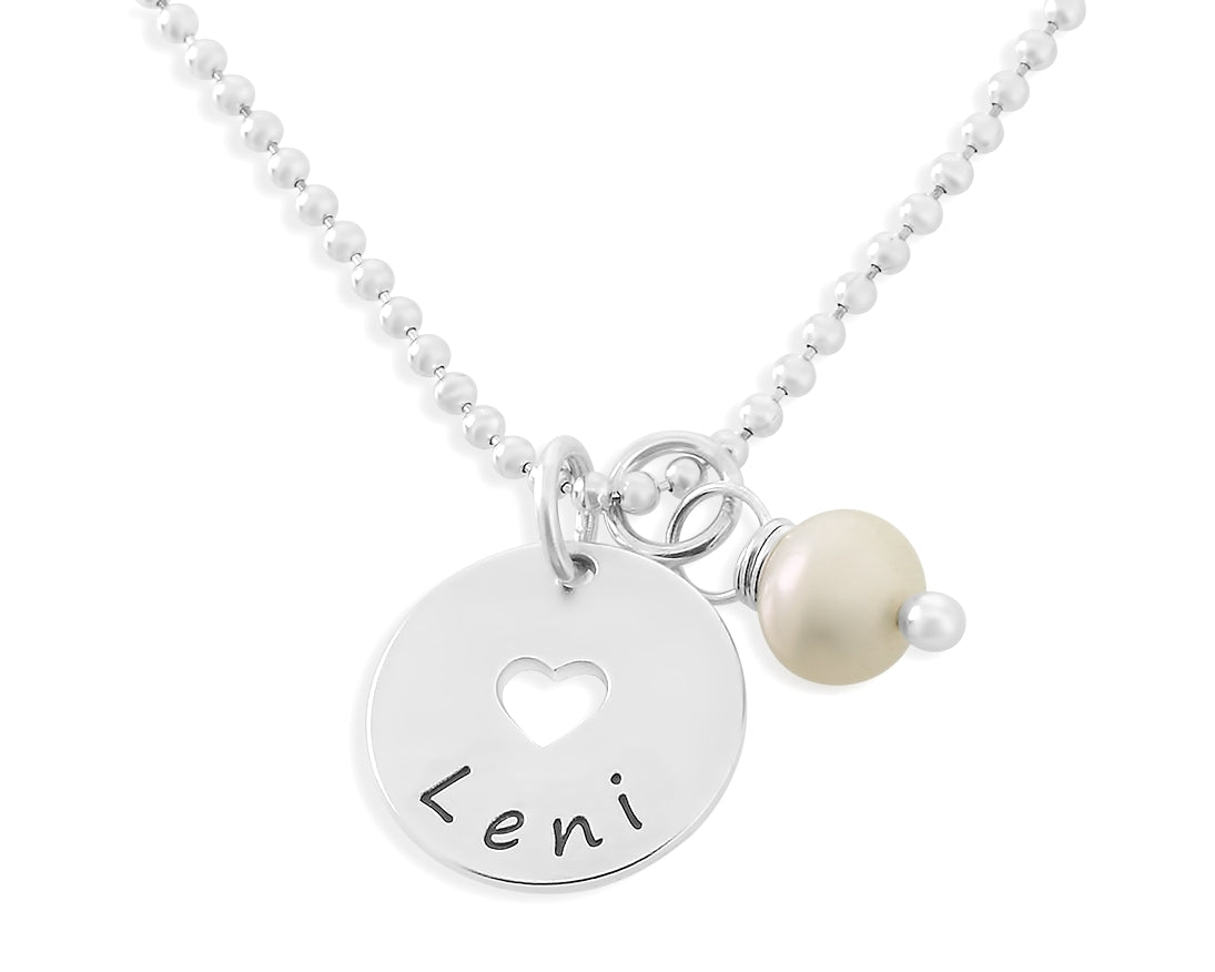 SILBERSCHMUCK MIT GRAVUR KETTE MIT PERLE NAMENSKETTE MIT HERZ 925 SILBER