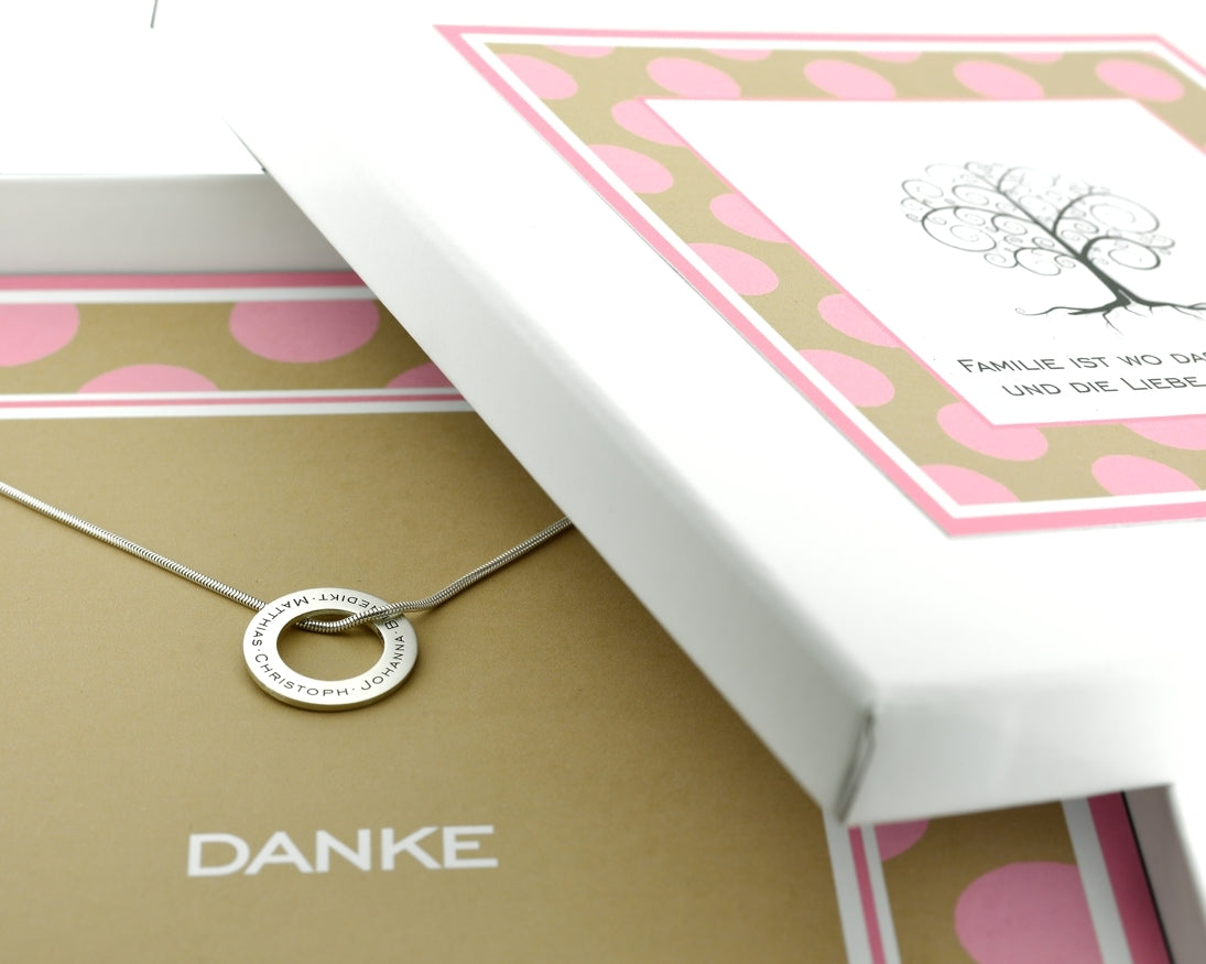 MAMA Kette ♥ oder Schmuck für Mama ist ein beliebtes Geschenk für Mutter. Egal ob Kette mit Gravur oder ohne, mit Herzanhänger oder Kinderfigur - solcher Schmuck zeigt immer die enge Verbindung zwischen Mutter und Kind, denn die Liebe zwischen Mama und Ihrem Kind ist unendlich. Bei GALWANI finden Sie eine große Auswahl an Ketten für Mütter, Armbänder für Mama oder Oma und natürlich auch Anhänger. Viele davon können mit Gravur personalisiert werden. So können die Daten des Neugeborenes fest gehalten werden und immer bei sich getragen werden als Erinnerung an das besondere Ereignis.