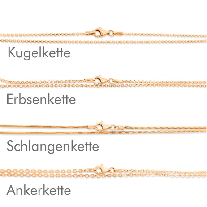 Geben Sie bitte Ihren gewünschten, Kettentyp, Kettenlänge und Ihren Wunschtext in die vorgegebenen Textfelder beim Kauf an.
