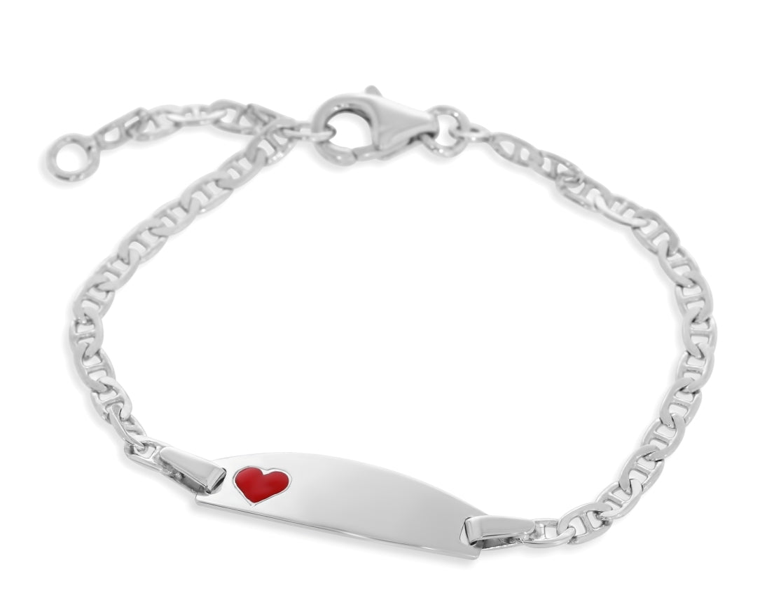 Baby Kinder ID Armband mit rotem Herz Gravur Armband 925 Silber