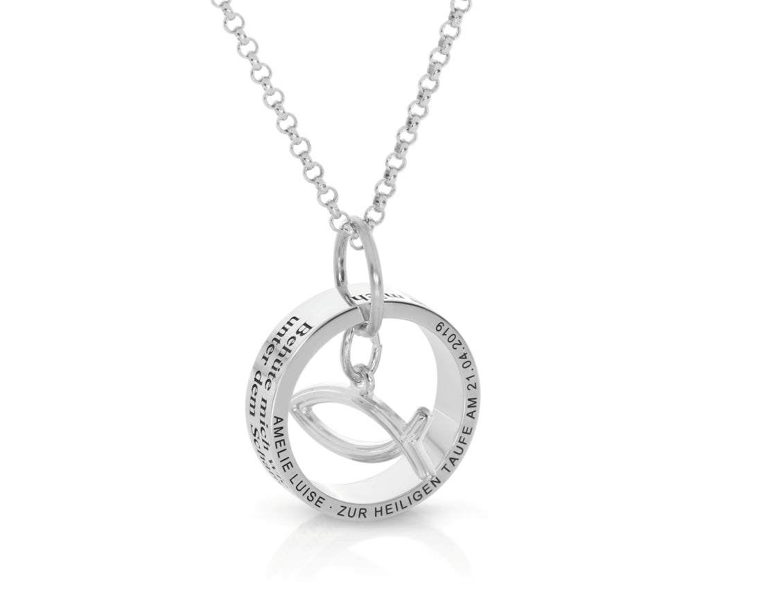 Kette Taufring silber Ichthys Fisch Anhänger Gravur Taufe Kommunion Geschenk