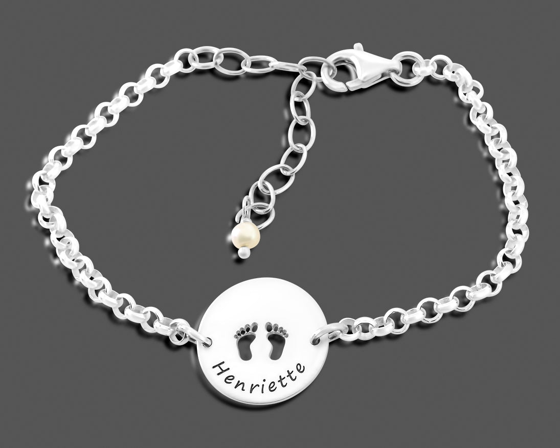 ARMBAND MIT BABYFÜßEN GESCHENK ZUR GEBURT 925 SILBER NAMENSARMBAND