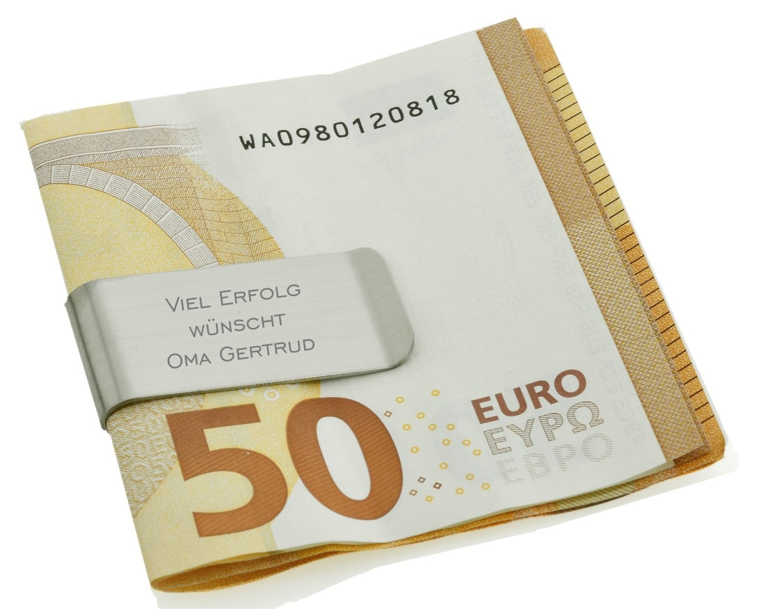 EDELSTAHL GELDKLAMMER PERSONALISIERT GELDSCHEINKLAMMER MIT GRAVUR