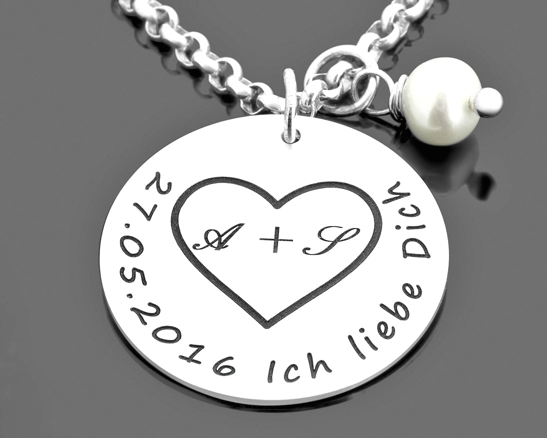 HOCHZEITSKETTE SILBER MIT INITIALEN, LIEBESSCHMUCK, KETTE MIT GRAVUR