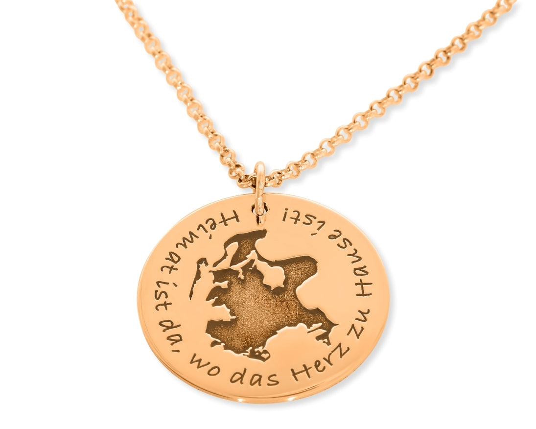 KETTE GRAVUR EIGENE ZEICHNUNG WELTKARTE RÜGEN HEIMAT SCHMUCK ROSÉ VERGOLDET