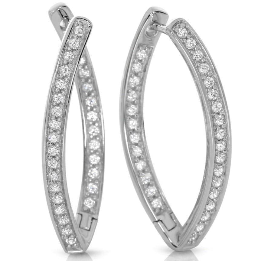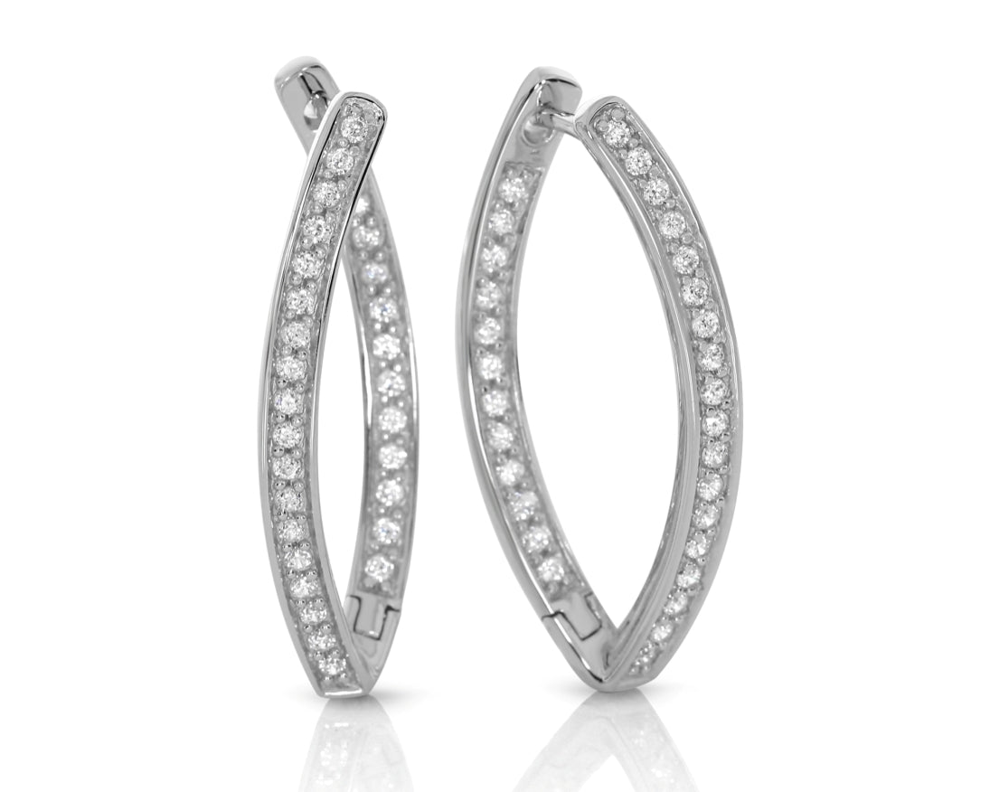 Ein Paar geschwungene ovale Creolen mit Klappmechanik aus 925 Sterlingsilber. Die strahlend schönen Zirkonia sind das Highlight und werden im jedem Fall für Begeisterung sorgen. Die Creolen haben eine Höhe von ca. 30 mm Breite ca. 1,6 mm.